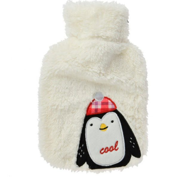 Bolsa de Agua Caliente 1L con Funda y tapón Seguridad, Bolsa de Agua para Cama con un diseño (Pingüino)