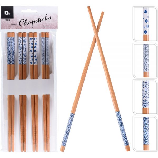 Blister 8 palillos chinos. 4 diseños diferentes. Ideal para disfrutar de tus cenas en compañía.