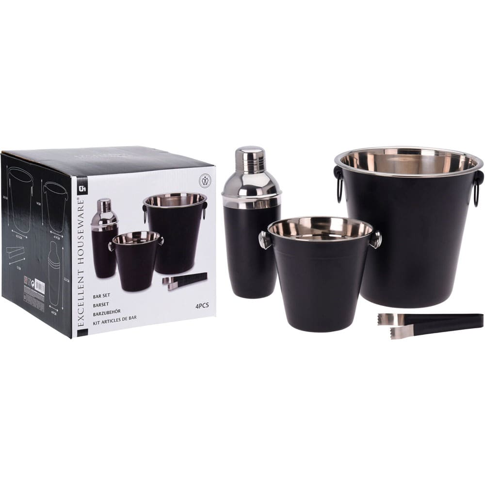 Set de cocktelería de 4 piezas en un elegante color negro y de acero Inoxidable